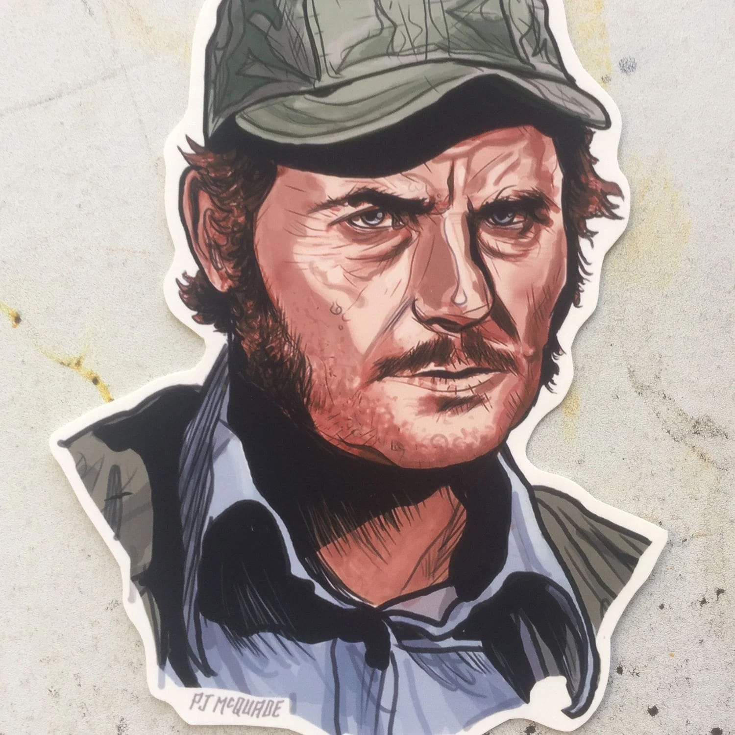 Quint for you! Put him anywhere, inside or out. 3.5 x 5.25" Custom cut, white matte vinyl. WATERPROOF -------------------------------- More JAWS Stickers & Fridge Magnets also available! Plus Bday, Xmas and Vday cards, and Xmas ornaments, see shop for listings